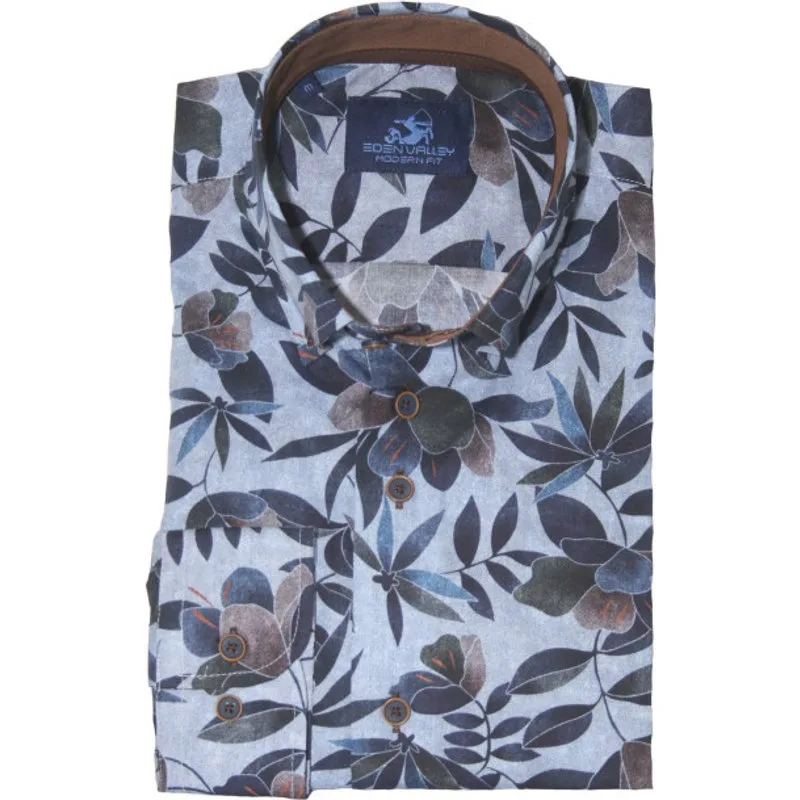Gebloemd heren overhemd met lange mouwen en een button-down kraag van het merk Eden Valley. Modern fit 100% Katoen Kleurnummer: 32