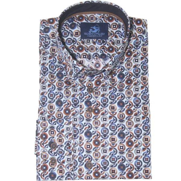 Lange mouw heren overhemd in een modern fit van het merk Eden Valley. Dit overhemd heeft een grafische allover print. Modern fit 100% Katoen Kleurnummer: 32