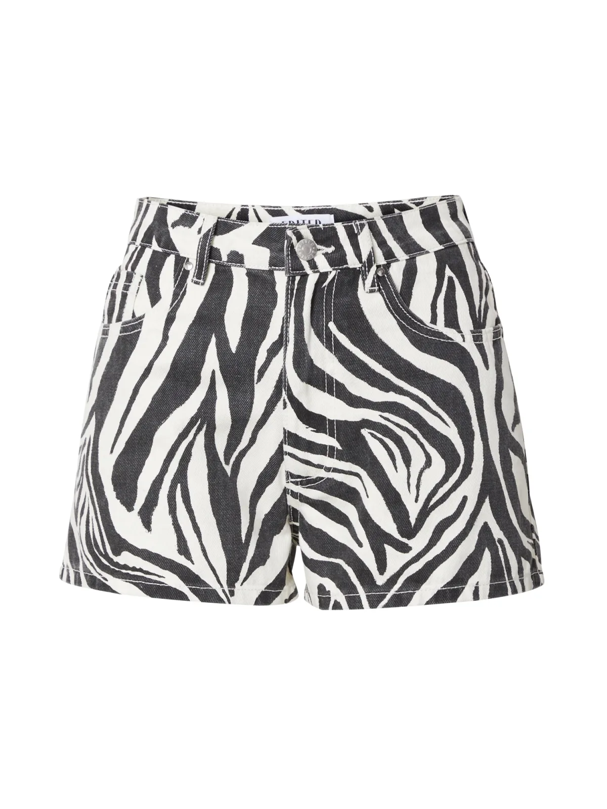 Design: Ritssluiting, 5-pocket-style; Type sluiting: Ritssluiting; Materiaal: Denim; Motief: Dierenprint; Extra's: All-over patroon, Riemlussen; Lengte: Kort/mini; Pasvorm: Regular; Taillehoogte: Mid waist