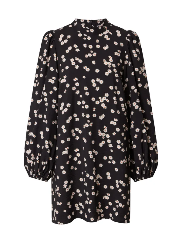 Design: Gevoerde zoom/rand, Rechte zoom, Rug rits; Materiaal: Viscose; Halstype: Opstaande kraag; Motief: Bloemenprint; Details: Gedrapeerd; Extra's: All-over patroon, Gladde stof; Lengte: Kort/mini; Pasvorm: Normale pasvorm; Armlengte: Lange mouw