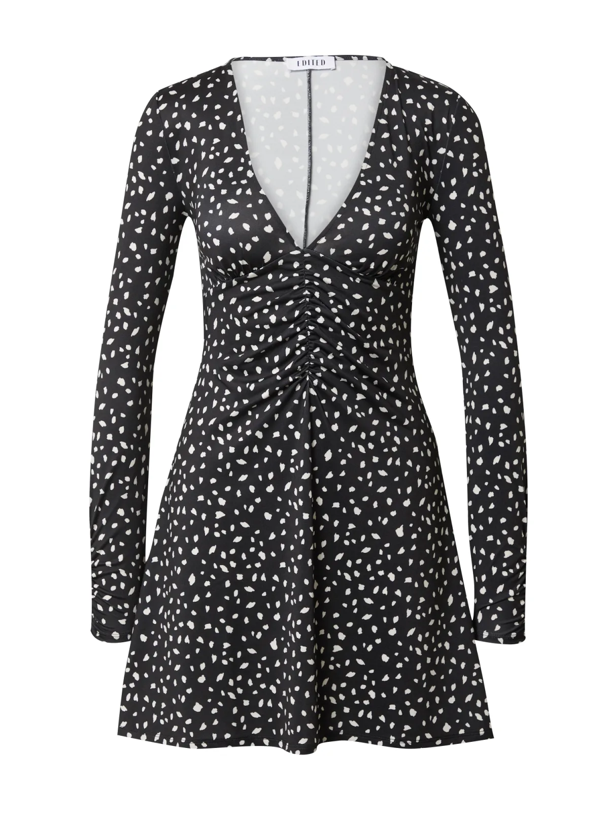 Design: Gevoerde zoom/rand, Diepe snit/decolleté; Halstype: V-hals; Motief: Gestippeld; Extra's: All-over patroon, Gladde stof; Lengte: Kort/mini; Pasvorm: Normale pasvorm; Armlengte: Lange mouw