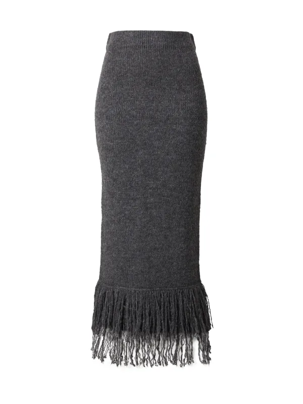 Design: Elastische taille/zoom, Gefranjerde zoom; Materiaal: Knitwear; Motief: Mélange; Rokvorm: Kokerrok; Details: Franjes; Extra's: Op staal naden; Lengte: Lang/maxi; Pasvorm: Normale pasvorm