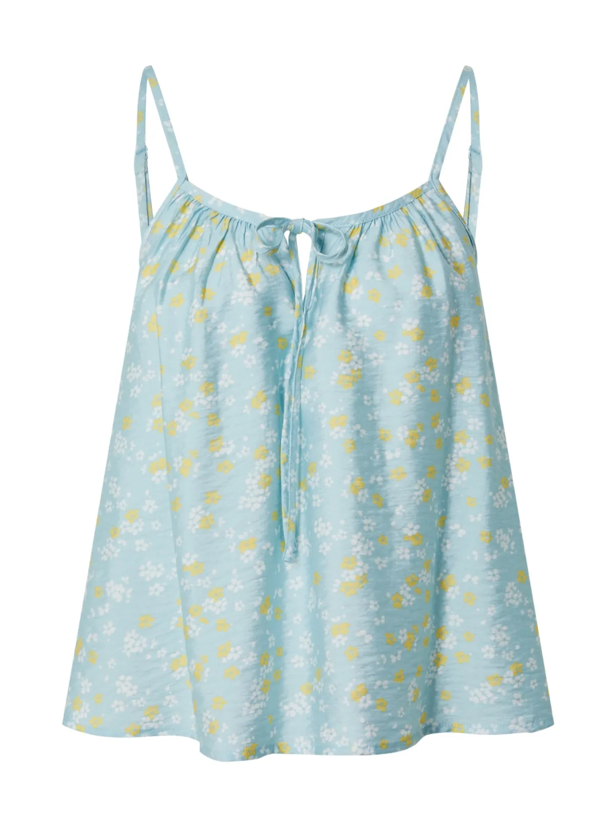 Design: Om te knopen/binden, Ingelegde kraag; Materiaal: Jersey; Halstype: Uitgesneden hals; Motief: Bloemenprint; Soort bandjes: Spaghettibandjes; Extra's: All-over patroon, Op staal naden; Pasvorm: Normale pasvorm; Armlengte: Mouwloos; Lengte: Normale lengte