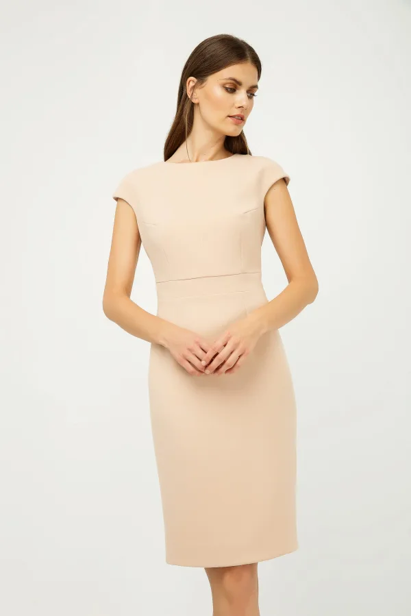 Effen jurk met kapmouwen Creme kleur. Prijzen