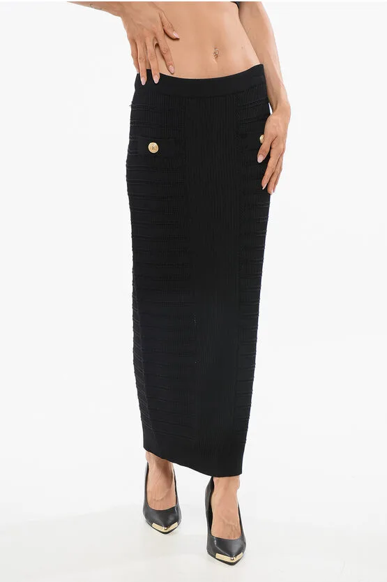 Effen kokerrok met decoratieve knopen in zwart Prijzen