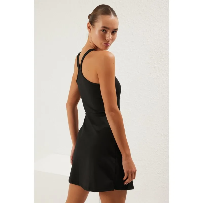 Effen mini-jurk voor dames met spaghettibandjes, sportief model