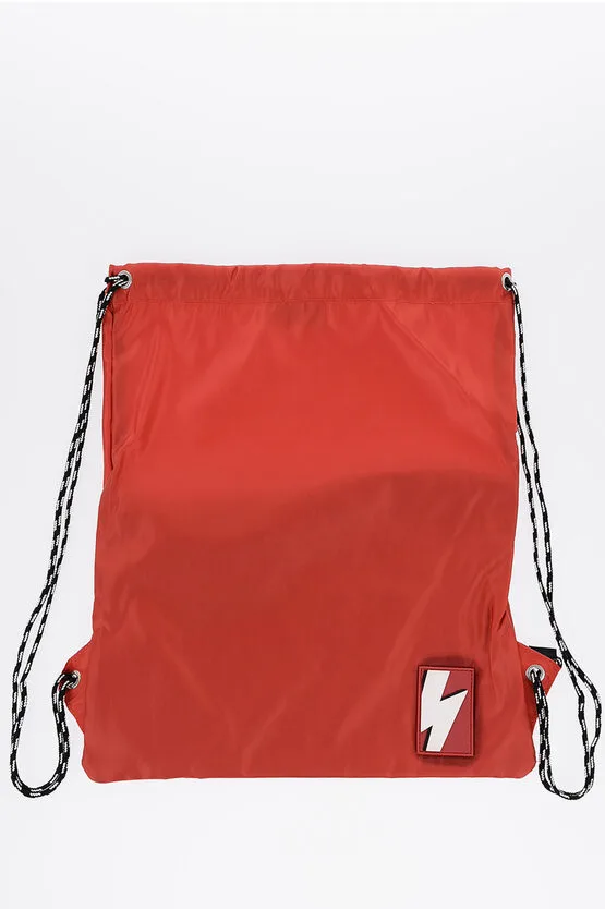 Stel Notificatie voor Product in: Effen nylon rugzak met trekkoord en monogram in rood - €425,00
