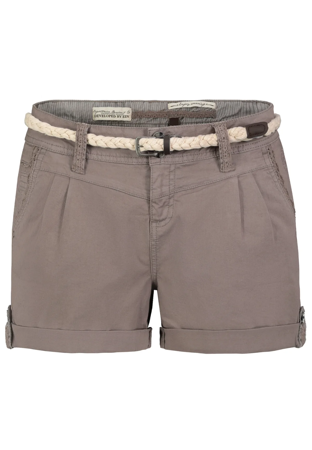 Design: Achterzak, Met riem, Zakken aan de zijkant, Knop sluiting; Type sluiting: Ritssluiting; Materiaal: Katoen; Motief: Effen; Details: Plooien; Extra's: Op staal naden, Riemlussen; Lengte: Kort/mini; Pasvorm: Regular; Taillehoogte: Low waist