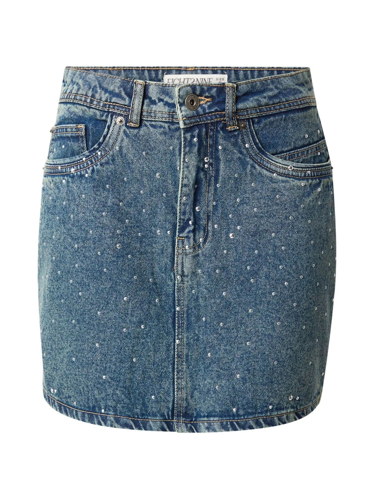 Design: Gevoerde zoom/rand, Ritssluiting, 5-pocket-style; Type sluiting: Ritssluiting; Materiaal: Denim; Motief: Effen; Rokvorm: Minirok; Details: Sierstenen; Extra's: Glitterend, Contrasterende naden, Vaste grip, Riemlussen; Lengte: Kort/mini; Pasvorm: Normale pasvorm