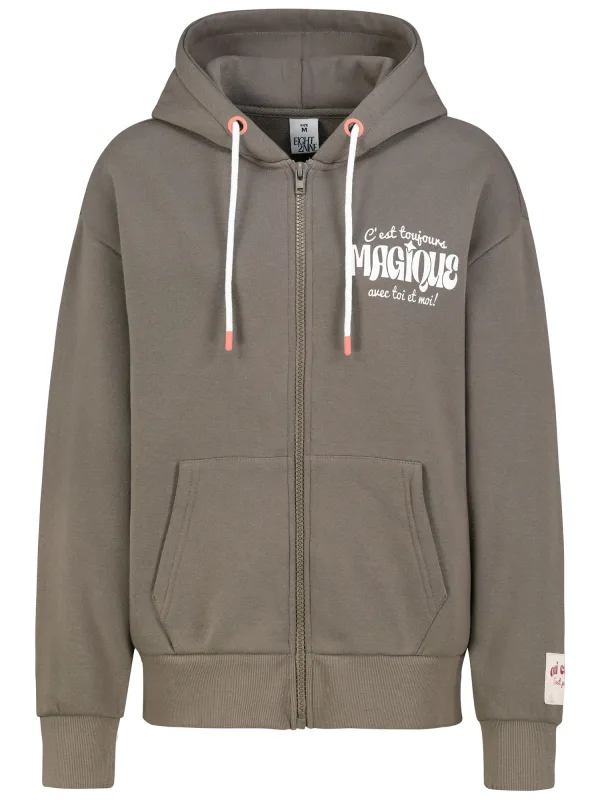 Design: Ritssluiting, Capuchon met trekkoord, Geribd ceintuurtje, Kangaroo zak; Materiaal: Katoen; Halstype: Capuchon; Motief: Tekst print; Pasvorm: Wijde pasvorm; Armlengte: Lange mouw; Lengte: Normale lengte