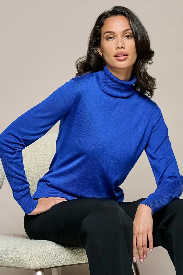 Voor de koudere seizoenen is een lichtgebreide coltrui van Mart Visser een onmisbare aanvulling op je garderobe. De Elaine top is de perfecte winter essential in een prachtige kobaltblauwe kleur. Deze gebreide coltrui heeft een ingebreid driehoekig motief op de mouwen en het rugpand, een kenmerkend designerdetail! De trui is afgewerkt met ribboorden aan de onderkant en de hals, en heeft een Mart Visser-tag van metaal op de achterkant. De top heeft lange mouwen en een losse pasvorm die mooi om het lichaam valt en tot op de heup reikt. Deze stijlvolle top is gemakkelijk te combineren en verkrijgbaar in andere trendy kleuren.