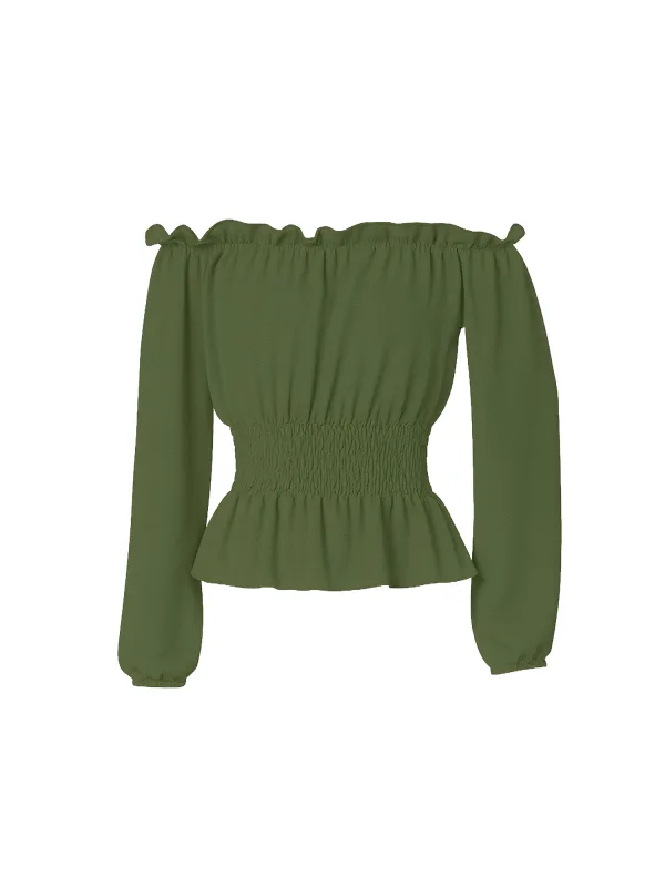 Blouse type: Blouseshirt; Design: Pofmouwen; Motief: Effen; Kraag: Zonder kraag; Details: Ruches, Gedrapeerd; Extra's: Gladde stof; Pasvorm: Normale pasvorm; Armlengte: Lange mouw; Lengte: Normale lengte
