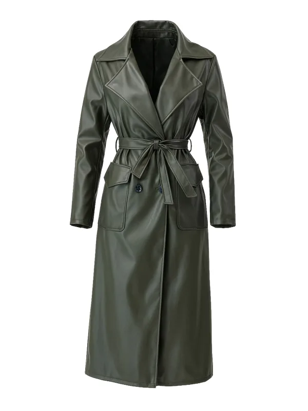 Type mantel: Trenchcoat; Type sluiting: Knoopsluiting; Voering: Niet gevoerd; Materiaal: Imitatieleder; Motief: Effen; Pasvorm: Losse pasvorm; Lengte: Normale lengte