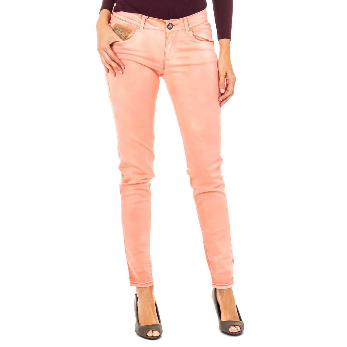 Elastische broek. Oranje Laag met skinny snit. Knoop- en ritssluiting. Twee zakken aan de voorkant, en minizakje met geborduurd merklogodetail. Twee open zakken op de achterkant, waarvan één met studs detail. Riemlussen. Leren label met de naam van het merk op de achterkant van de tailleband. Naden in toon zichtbaar. Samenstelling: 97% Katoen - 3% Elastaan Wasvoorschriften: - Maximaal wassen op 40ºC. - Strijken op gemiddelde temperatuur, max. 110 ° C. - Droger mag gebruikt worden. - Geen bleekmiddel gebruiken. - Kan niet chemisch gereinigd worden. Samenstelling: 97% Katoen, 3% Elastaan Onderhoud: - Maximaal wassen op 40ºC. - Strijken op gemiddelde temperatuur, max. 110ºC. - Kan in de droger. - Geen bleekmiddel gebruiken. - Kan niet chemisch gereinigd worden.