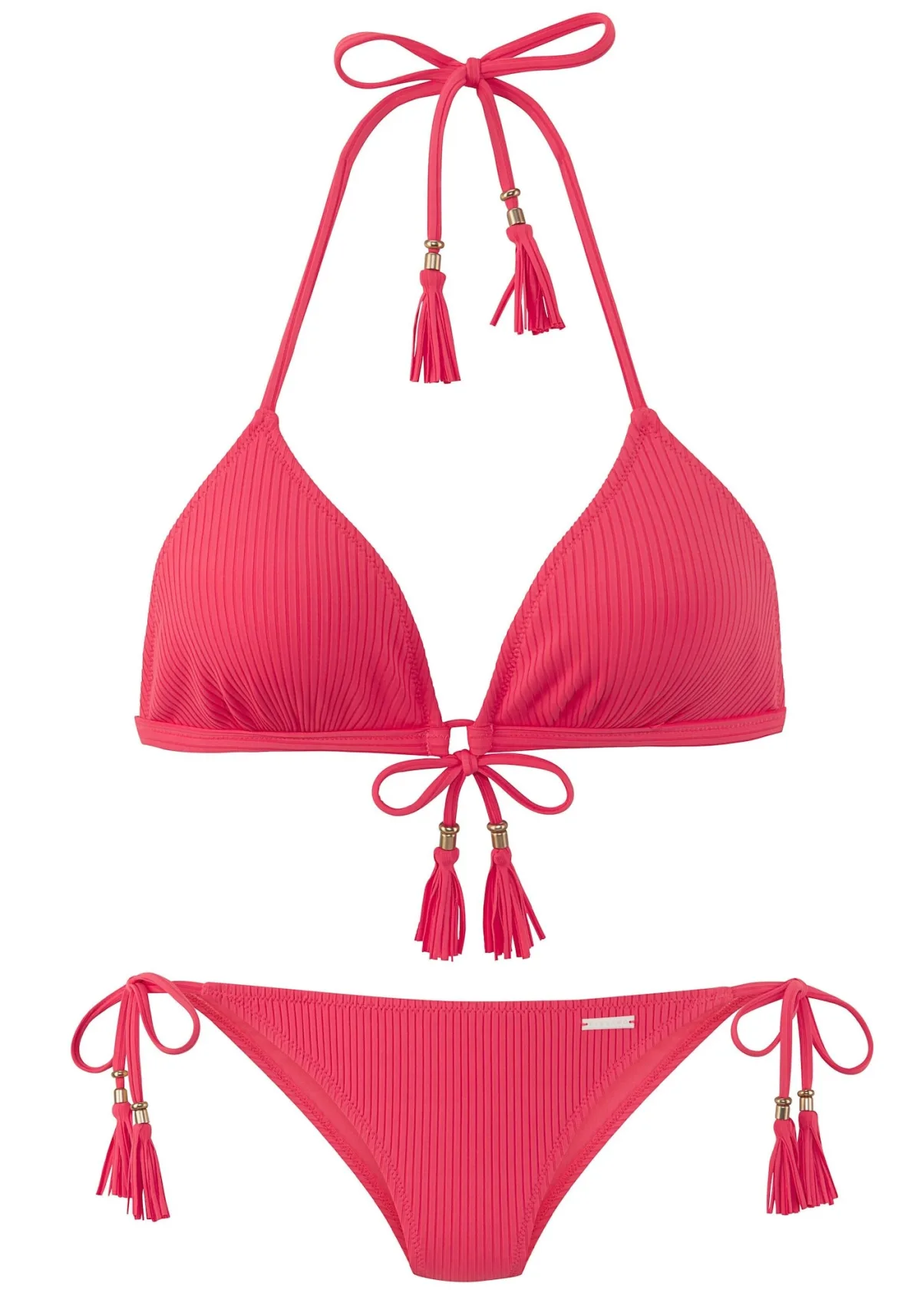 Cup soorten: Uitneembare cups; Soort bandjes: Halterbandjes; Bh/bikini type: Triangel; Beugel: Zonder beugel; Motief: Effen; Broekvorm: Zijdelings gebonden; Details: Franjes; Extra's: Franjes, Met textuur