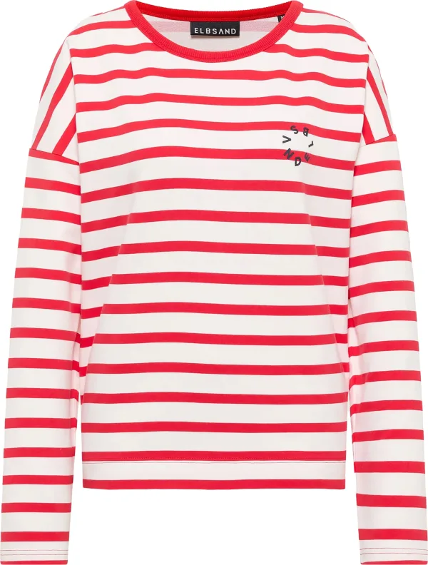 Sweatshirt Elva van Elbsand is een casual dames T-shirt met een ronde halslijn en een losse pasvorm. Het lange mouwen ontwerp heeft een opvallend streep patroon dat het een frisse en eigentijdse uitstraling geeft. Perfect voor een ontspannen en comfortabele look.