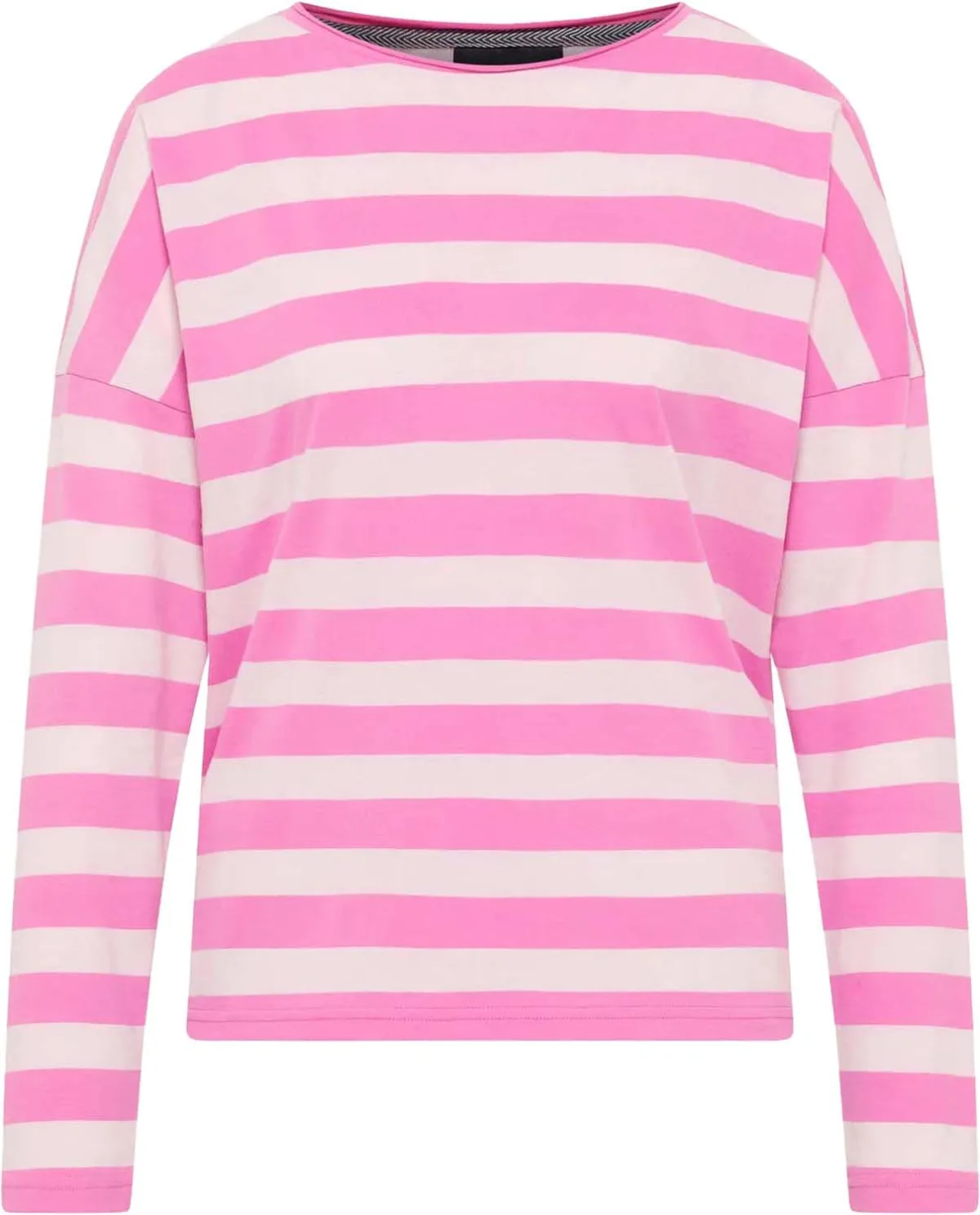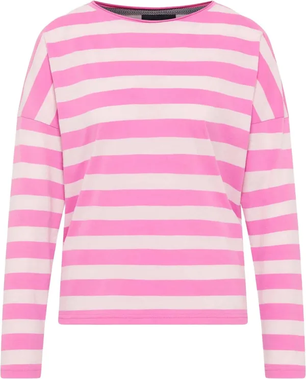 T-shirt Milia van Elbsand is een t-shirt met ronde hals, lange mouwen en een relaxed pasvorm. Het streeppatroon in roze en lichtroze geeft een frisse uitstraling, met verlaagde schoudernaden en een subtiel logo bij de zoom. Combineer met een lichte jeans en sneakers.