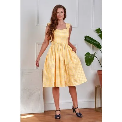 Eliza Gingham swing jurk in geel