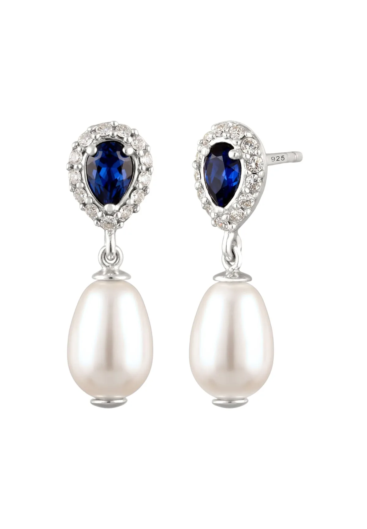 Specificaties: ELLI Oorbellen donkerblauw / zilver / parelwit