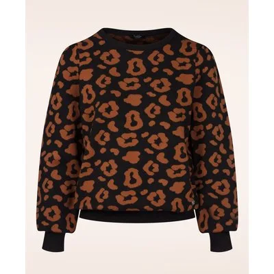 Ellie Leopard gebreide trui in zwart en bruin