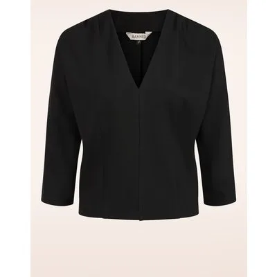“Simple, sleek, and so chic!” Deze elegante top is een veelzijdige basic met nét dat beetje extra. Ze heeft een flatterende V-halslijn met subtiele plooitjes die zorgen voor een vrouwelijk silhouet. Uitgevoerd in een zachte, soepele en stretchy jersey viscosemix in klassiek zwart, waardoor ze comfortabel draagt en eindeloos te combineren is. * V-halslijn met plooitjes * 3/4 mouwen * Lang genoeg om op een normale heupbroek te dragen
