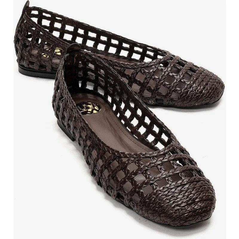 Een strakke ballerina met een modern gevlochten cagedesign en gestroomlijnde pasvorm voor veelzijdig stadsgebruik