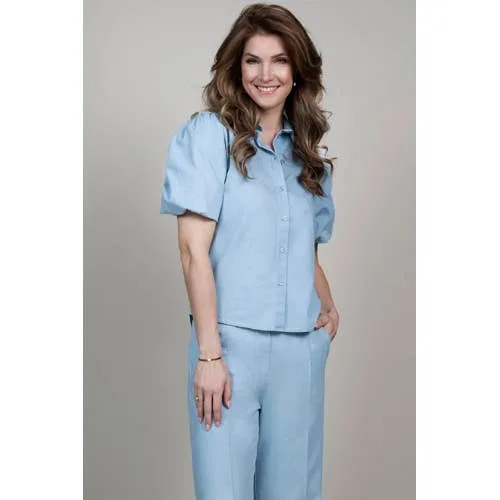 Fris, vrouwelijk en makkelijk te combineren: deze lichtblauwe katoenen blouse van Elvira Collections is zo'n item waar je steeds weer naar grijpt. De effen kleur oogt rustig en helder, terwijl de pofmouwen en klassieke kraag voor een subtiel modieuze uitstraling zorgen. Gemaakt van 100% katoen voelt de blouse luchtig en comfortabel aan, precies wat je zoekt in het voorjaar.Details die het verschil maken Gemaakt van 100% katoen, een soepele stof die prettig aanvoelt op de huid Korte mouwen met pofeffect voor een vrouwelijke touch Klassieke kraag en volledige knoopsluiting aan de voorkant Effen lichtblauwe kleur die makkelijk te combineren is Geen borstzakken voor een rustige, cleane look Geschikt voor standaardmaten binnen de feminiene collectieLichtblauwe blouse voor elke dagDeze blouse past goed bij een nette broek voor op kantoor, maar doet het ook prima op een jeans of korte broek in het weekend. Draag de knoopsluiting gesloten voor een geklede uitstraling of laat de bovenste knoopjes open voor een meer ontspannen gevoel. In de lente is het een fijne, luchtige optie, maar met een vest of blazer erover kun je de blouse ook makkelijk doordragen.Stijlvol en betrouwbaar met Elvira CollectionsElvira Collections staat bekend om vrouwelijke mode met doordachte details. De items zijn ontworpen om goed aan te sluiten op het dagelijks leven, met aandacht voor pasvorm en draagcomfort. Zo stel je moeiteloos een garderobe samen die zowel stijlvol als praktisch is.Een veelzijdige blouse die je garderobe een frisse, lichtblauwe update geeft.