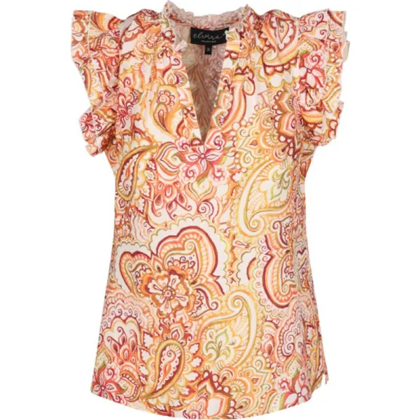 Deze prachtige top van het merk Elvira Casuals, verkrijgbaar in de opvallende kleur oranje dessin, is een must-have voor elke vrouw. De top heeft een korte mouw en is daardoor perfect voor de warmere dagen. Het materiaal bestaat uit 95% viscose en 5% elastaan, wat zorgt voor een comfortabele en soepele pasvorm. Dankzij het mooie dessin is deze top eenvoudig te combineren met verschillende outfits. Draag hem bijvoorbeeld in combinatie met een jeans en sneakers voor een casual look of met een rok en sandalen voor een meer geklede uitstraling. Deze top mag zeker niet ontbreken in jouw kledingkast. Bestel hem nu en voeg wat kleur toe aan je garderobe!