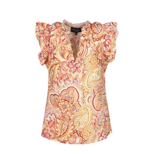Deze prachtige top van het merk Elvira Casuals, verkrijgbaar in de opvallende kleur oranje dessin, is een must-have voor elke vrouw. De top heeft een korte mouw en is daardoor perfect voor de warmere dagen. Het materiaal bestaat uit 95% viscose en 5% elastaan, wat zorgt voor een comfortabele en soepele pasvorm. Dankzij het mooie dessin is deze top eenvoudig te combineren met verschillende outfits. Draag hem bijvoorbeeld in combinatie met een jeans en sneakers voor een casual look of met een rok en sandalen voor een meer geklede uitstraling. Deze top mag zeker niet ontbreken in jouw kledingkast. Bestel hem nu en voeg wat kleur toe aan je garderobe!