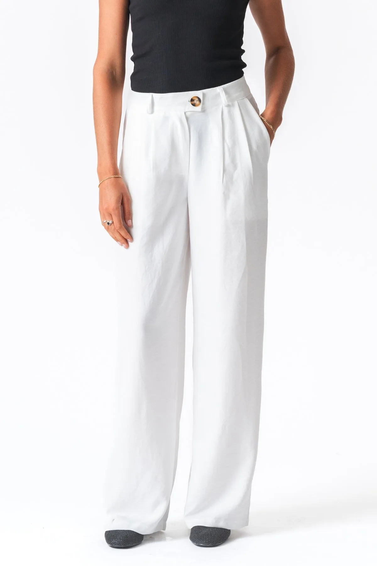 Ontdek de Emma Pants Loose - Wit van TeeShoppen Ervaar de perfecte combinatie van comfort en stijl met onze Emma Pants Loose - Wit. Deze broek is ontworpen voor de moderne vrouw die een veelzijdige en elegante look wil, of je nu op weg bent naar je werk, een fijne wandeling in de stad maakt of een ontspannen weekendje weg bent. Deze broek is met zorg en precisie gemaakt en is een onmisbare aanvulling op elke garderobe. De Emma Pants Loose - Wit zijn ontworpen met veelzijdigheid en luxe in gedachten. De relaxte snit in combinatie met de fijne details maken deze broek een favoriet voor elke vrouw die zowel professionaliteit als natuurlijke elegantie wil uitstralen. Of je je nu netjes aankleedt voor een belangrijke ochtend of een meer casual look wilt, dit model creëert een naadloze overgang tussen de verschillende aspecten van je levensstijl. Je kunt gemakkelijk experimenteren met kleuren en texturen, zodat je een persoonlijke uitstraling kunt creëren. Combineer ze met een getailleerde blazer - lees meer over Blazers - om je outfit compleet te maken en een gebalanceerde en stijlvolle look te creëren. Door de minimalistische stijl kun je ze bij elke gelegenheid dragen, omdat ze perfect passen bij zowel sneakers als formele schoenen.