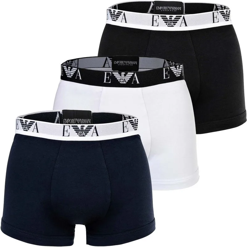 Drie korte boxershorts van het merk EMPORIO ARMANI. Comfortabele geweven elastische tailleband met logo. Elastische katoenen jersey. Hoogwaardige basics voor dagelijks gebruik.