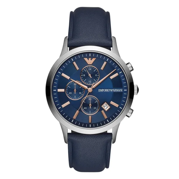 Shop Emporio Armani, de beste in klasse en stijl. Herenhorloge AR11216 EAN 4013496294743. Blauwe Multi Dial wijzerplaat.