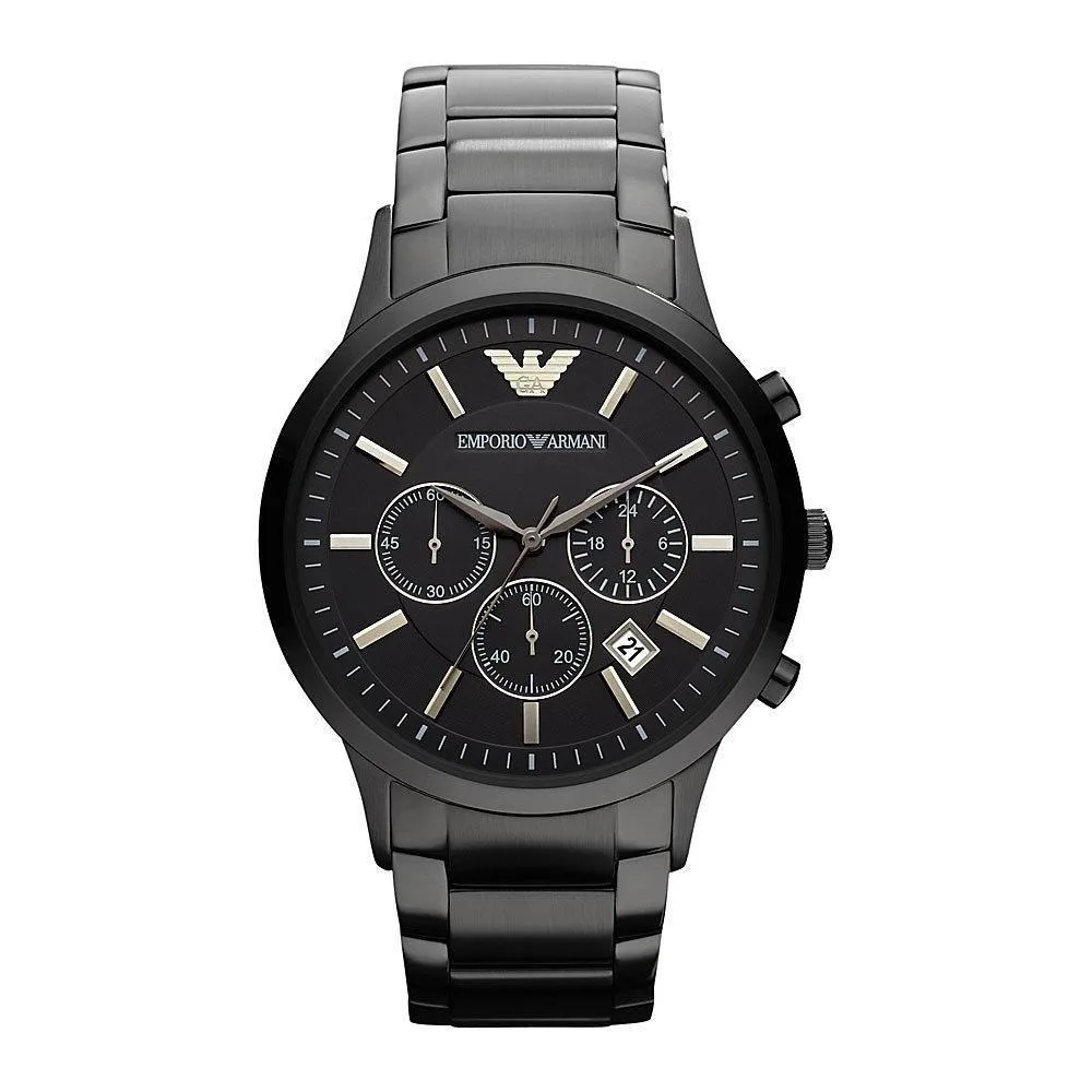 Herenhorloge Emporio Armani AR2453 EAN 4051432503580 zwart geïoniseerd. Dit horloge is voorzien van een datumvenster, chronograaffunctie en een Japans Quartz-uurwerk van hoge kwaliteit.