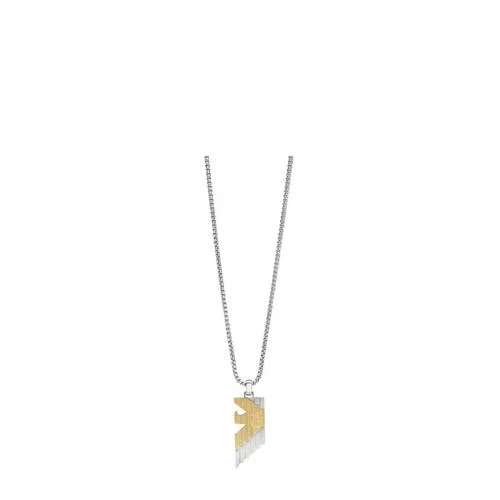 Deze Emporio Armani hangerketting is gemaakt van tweekleurig roestvrij staal en heeft een karabijnsluiting.Emporio ArmaniEmporio Armani is de eerste lijn gelanceerd door Giorgio Armani in 1981. Vanaf het begin was Emporio Armani een modefenomeen en het logo, met zijn karakteristieke adelaar, is een symbool geworden van verbondenheid voor zijn vele jonge fans over de hele wereld.Features zoals een casual stijl en esthetische elegantie worden seizoen na seizoen opnieuw ontworpen. Emporio Armani is een collectie rijk aan ideeën, die altijd een nieuwe manier van kleden voorstelt om de levensstijl van de hedendaagse jeugd te weerspiegelen.