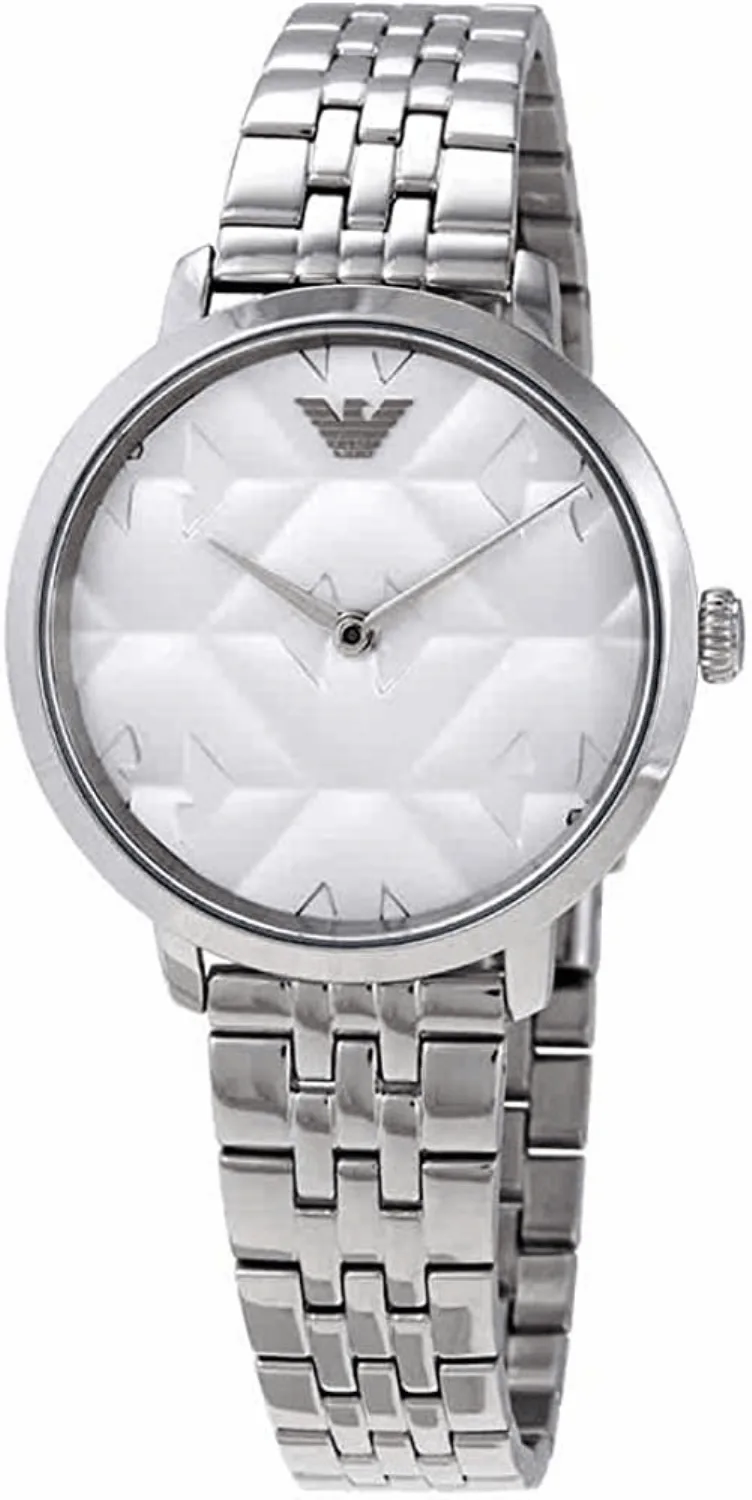Emporio Armani Dameshorloge Kwarts Zilver• Materiaal kastdeksel: Roestvrij staal• Soort glas: Mineraal• Materiaal Band: Roestvrij Staal• Kleur kast: Zilver• Waterdichtheid: 30 m (3 ATM)• Diameter: 32 m