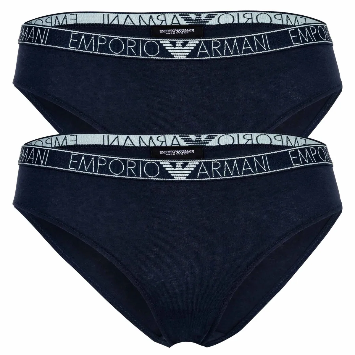 Twee hoogwaardige slips voor vrouwen van het merk EMPORIO ARMANI. Comfortabele geweven elastische tailleband met logo-opdruk. Rekbare jersey van de beste kwaliteit katoen.