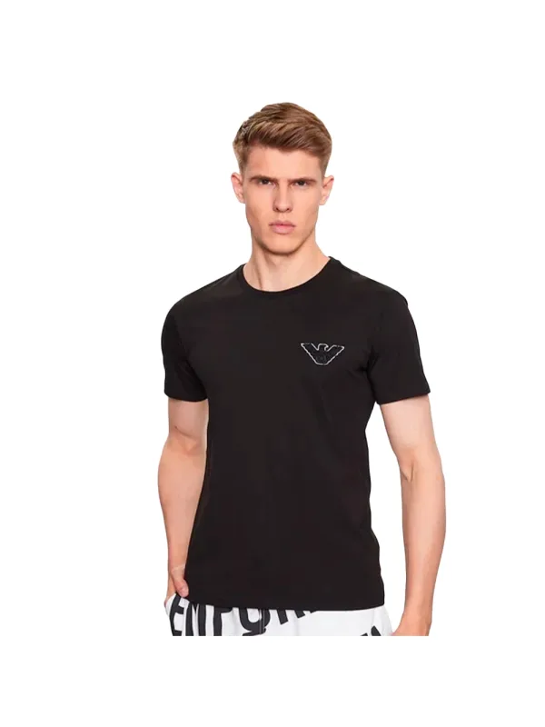 Emporio Armani Eagle heren T-shirt van zwart katoen. Authentieke kleding van het merk Emporio Armani – streetwear/sportkleding design van Emporio Armani – Emporio Armani voor heren, perfect voor dagelijks gebruik – het zwarte Emporio Armani T-shirt is een perfecte aanvulling op je garderobe – comfortabele katoenkwaliteit – klassiek – Eagle –