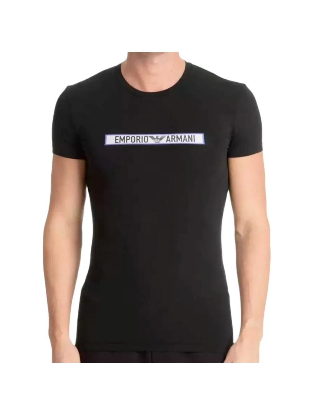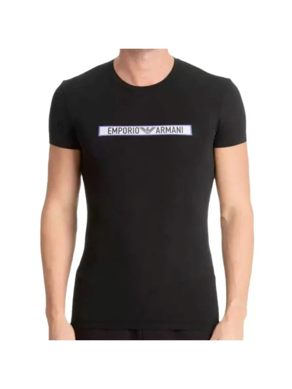 Emporio Armani Eagle heren T-shirt van zwart katoen. Authentiek Emporio Armani kledingstuk - streetwear/sportkleding design van Emporio Armani - Emporio Armani herenmode, perfect voor dagelijks gebruik - dit zwarte Emporio Armani T-shirt is een perfecte aanvulling op je garderobe - comfortabele katoenen stof - klassiek - Eagle -