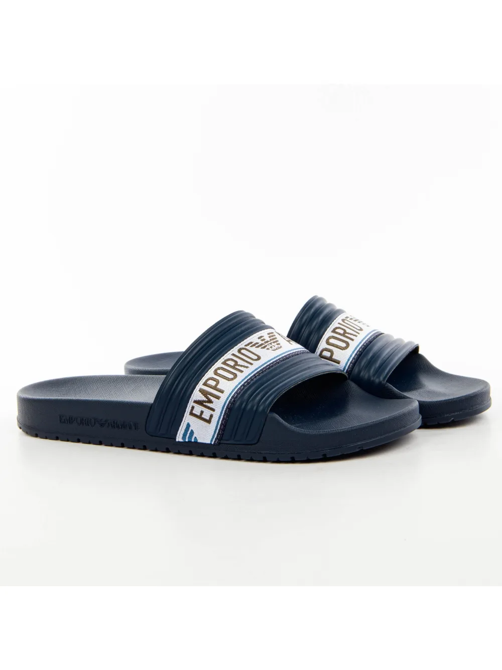 Emporio Armani Eagle herenclaquette van blauw polyurethaan. Authentieke Emporio Armani merkschoen - streetwear/sportswear design van Emporio Armani - Emporio Armani voor heren, ideaal voor dagelijks gebruik - De blauwe Emporio Armani claquette past perfect bij de rest van je garderobe - Comfortabel polyurethaan materiaal - Klassieke gesp - Adelaar - Synthetisch.
