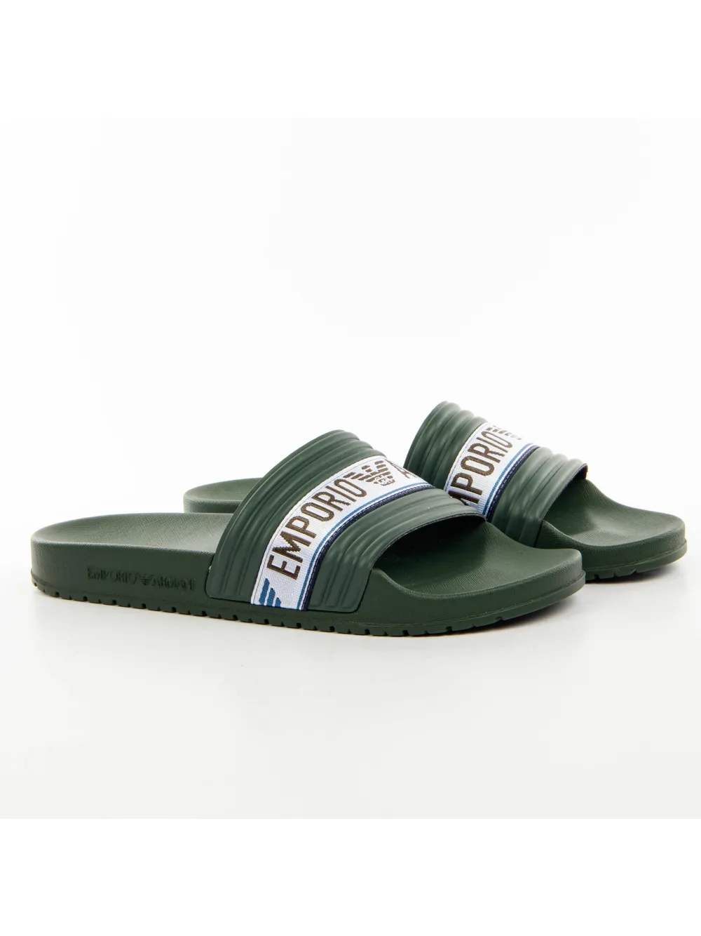 Emporio Armani Eagle herenclaquette van kaki polyurethaan. Authentieke Emporio Armani merkschoen - streetwear/sportswear design van Emporio Armani - Emporio Armani voor herenmode, perfect voor dagelijks gebruik - De kaki Emporio Armani claquette past perfect bij de rest van je garderobe - Comfortabel polyurethaan materiaal - Klassieke gesp - Eagle - Synthetisch