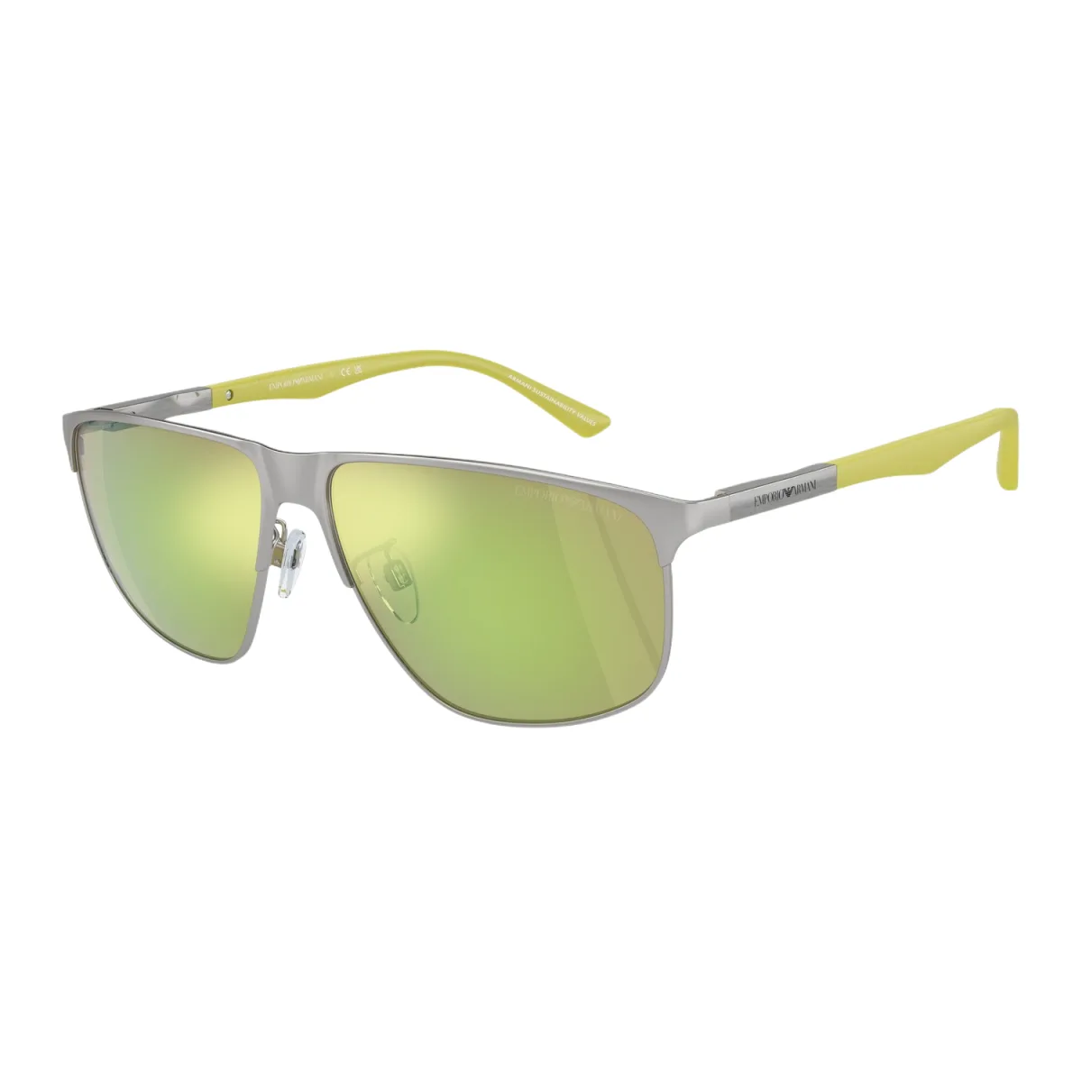 Emporio Armani Mannen Zonnebril EA2094-30458N - Materiaal: Metaal - Kleur frame: Groen/Grijs - Afmetingen: 52/19/140 mm (Diameter lens / Brug formaat / Lengte veren)