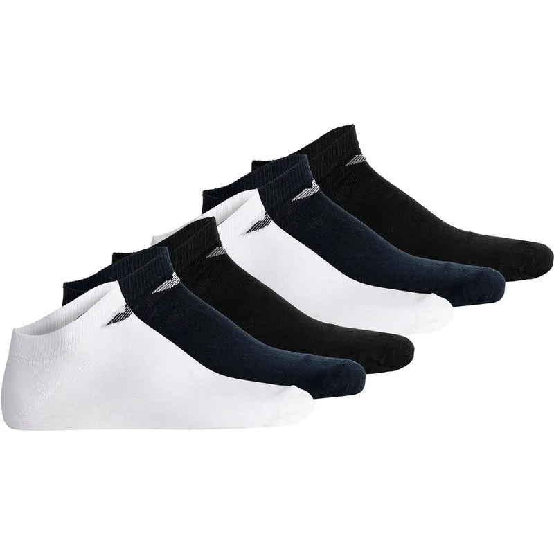 Zes paar hoogwaardige sneakersokken van het merk EMPORIO ARMANI. In een aantrekkelijke verpakking van 6 stuks met jacquardlogo.