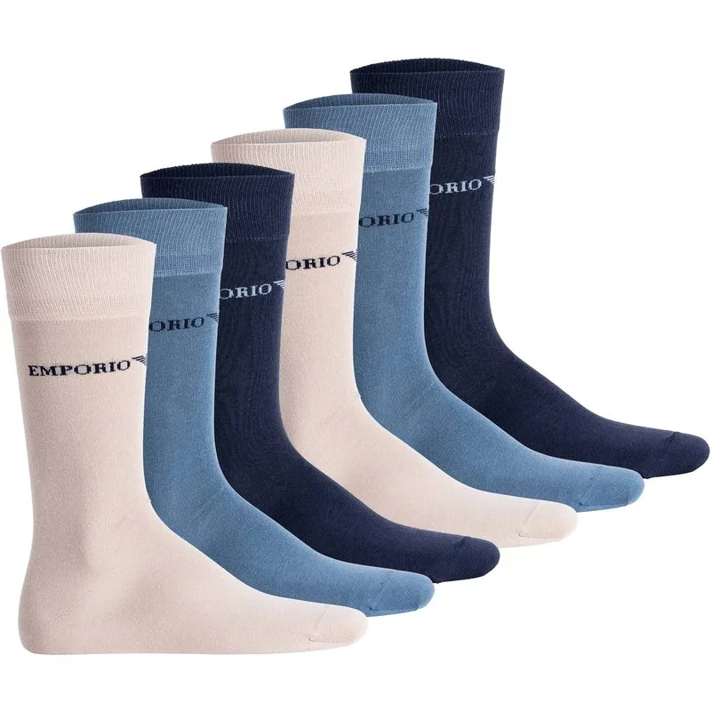 Zes paar hoogwaardige korte sokken van het merk EMPORIO ARMANI. Handige verpakking van 6 stuks, met jacquardlogo op de boord. Zeer comfortabel om te dragen.