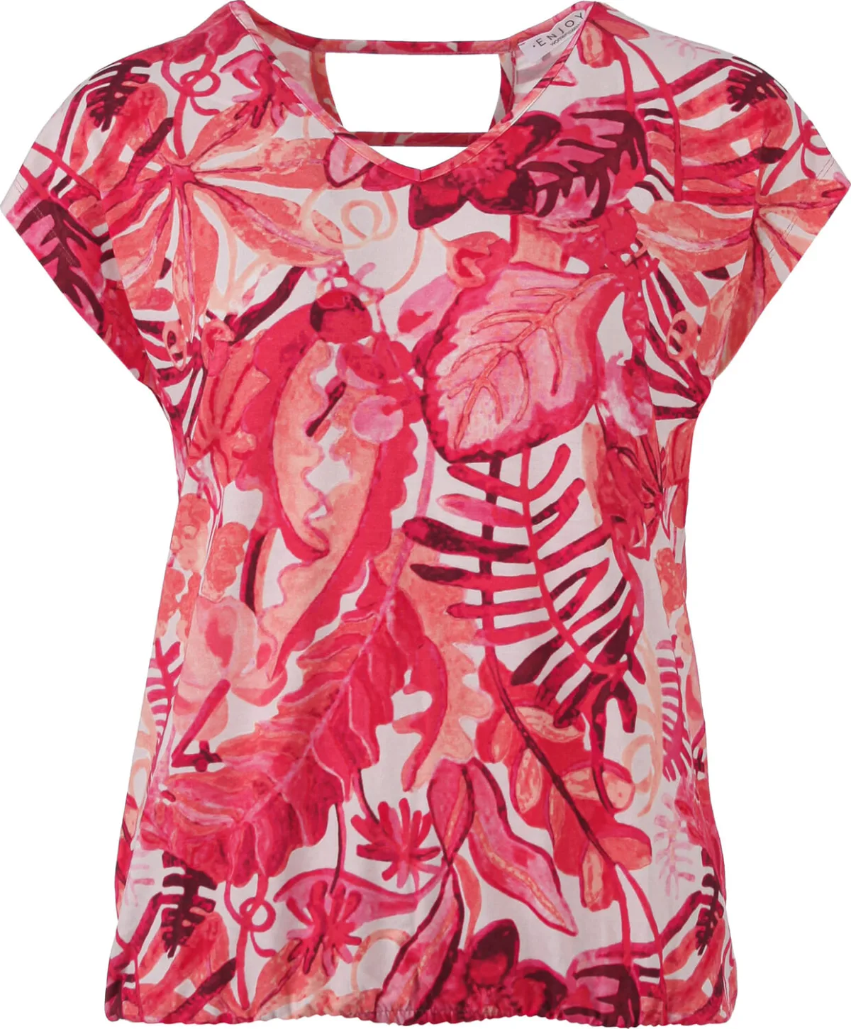 De top van Enjoy is een stijlvolle dames top met korte mouwen. Het bohemien ontwerp met V-hals en een losse pasvorm zorgt voor een casual uitstraling. De bloemenprint en korte mouwen maken het de perfecte keuze voor een ontspannen, modieuze look.