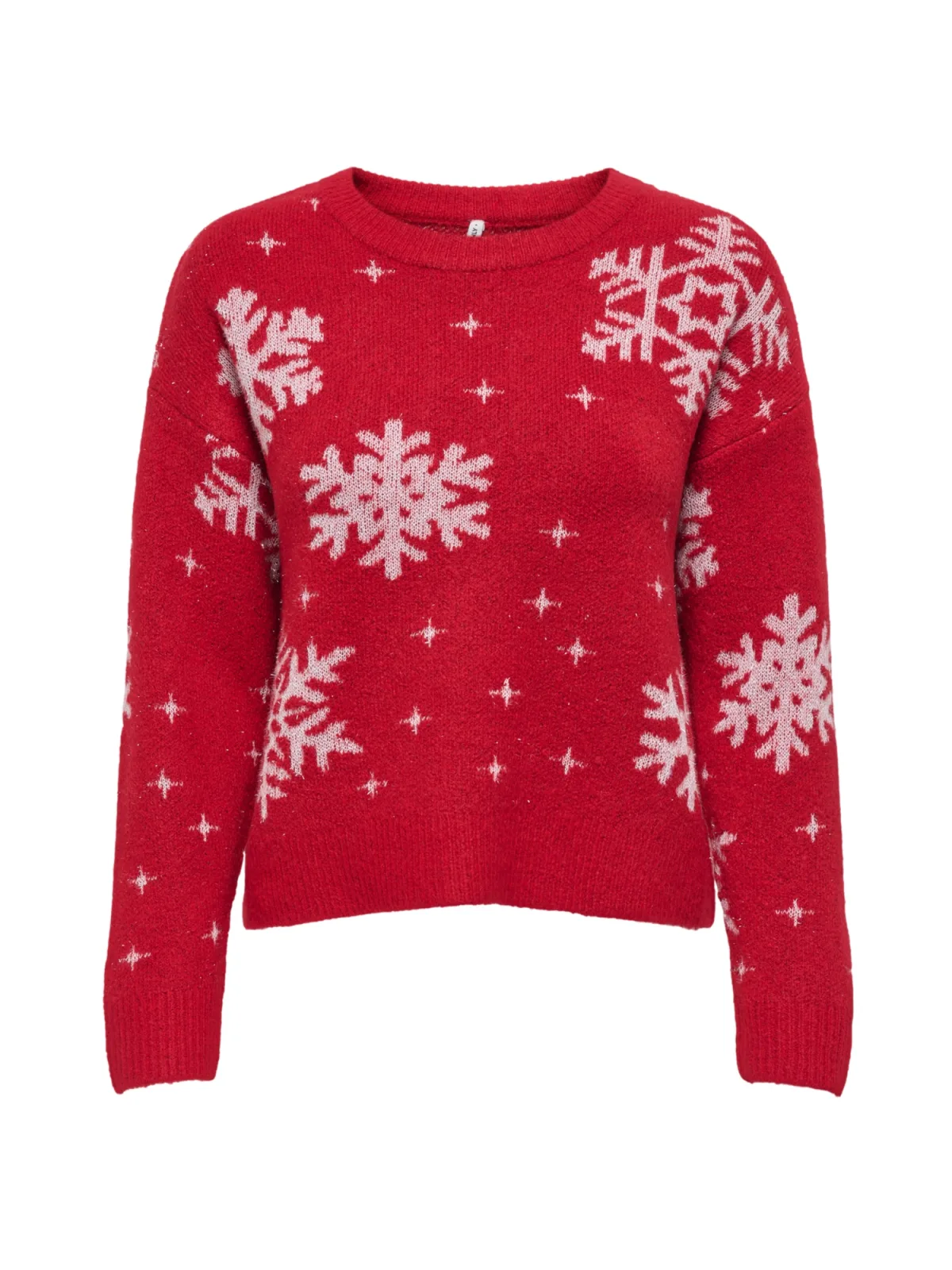 Wil je warmte, stijl en een beetje wintermagie in één? Deze damestrui maakt het mogelijk. De vlakgebreide stof zorgt voor een aangenaam lichte structuur. Door de normale pasvorm zit hij comfortabel en past hij bij elke outfit. De klassieke ronde hals geeft een tijdloze uitstraling en kan op verschillende manieren worden gecombineerd. De ribbelstructuur aan de hals en manchetten zorgt voor vorm en stabiliteit. Het ingebreide sneeuwvlokmotief brengt direct een winters gevoel. Zacht materiaal biedt je hoog draagcomfort van vroeg tot laat. Perfect voor kantoor, vrije tijd of een wandeling in de sneeuw. Hij kan geweldig worden gestyled met jeans of rokken. Een trui die je warm houdt en er tegelijkertijd fantastisch uitziet.