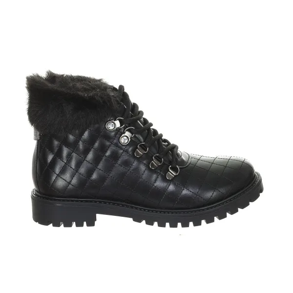 Enkellaarsjes met origineel ontwerp. Kleur Zwart Gemaakt van leer. Ronde punt. Detail van synthetisch haar op de bovenkant van de schacht. Vetersluiting aan de voorkant. Metallic applicatie van het merk op de achterkant. Sjabloon aangepast door het merk. Rubberen zool met antislip groeven. Bijpassende zichtbare naden. Samenstelling: Buitenkant: Leer en Textiel.- Binnenkant: Textiel. - Zool: Synthetisch. Onderhoud: - Reinigen met een natte doek. Samenstelling: Buitenkant: Leer, Textiel; Zool: Synthetisch; Binnenkant: Textiel Onderhoud: Reinigen met een natte doek.