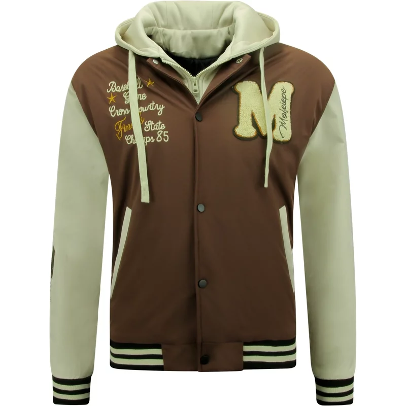 Baseball Jas met Capuchon Oversized -8632- Bruin - Specificaties:- Baseball Jas met Capuchon Oversized - Kleur: Zie afbeelding- Lengte: Kort / Oversized- Pasvorm: Los Fit / Oversized- Patroon: Print, Applicaties- Sluiting: Drukknopen- Materiaal: 100% Polyester- Zakken: 2 Jaszakken en Binnenzak- Seizoen: Winter- Wasvoorschrift: Machinewas 30 graden / Stomerij- Beschikbare maten: S - M - L - XL - XXL