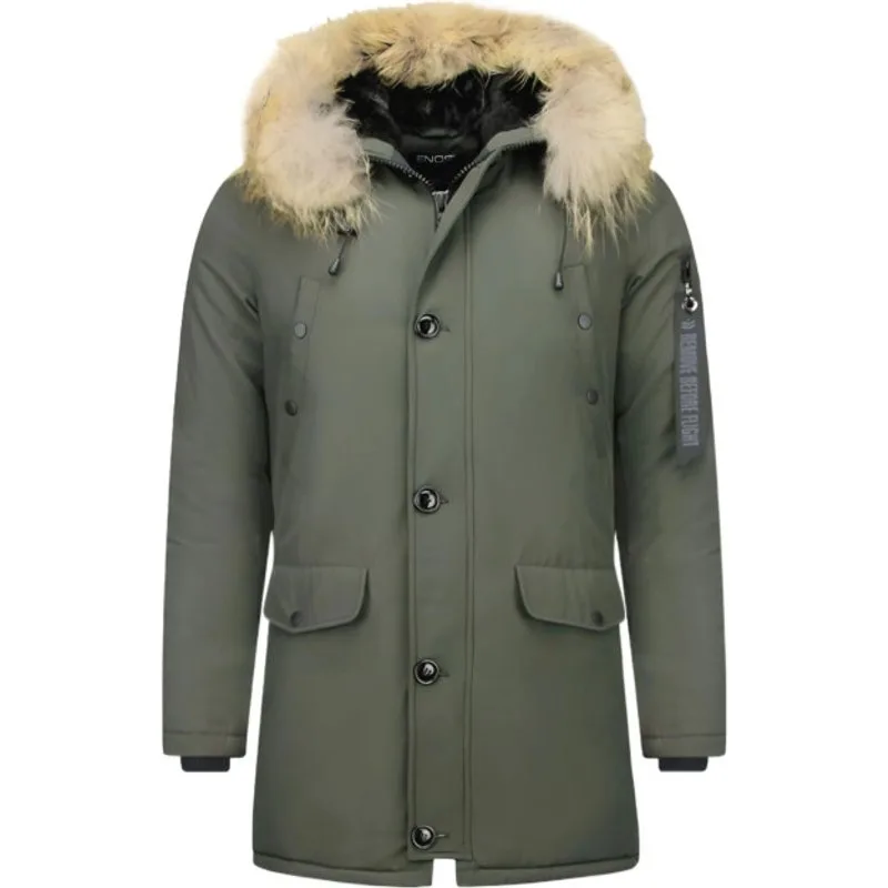 Exclusieve trendy Heren Bontjas met Bontkraag van het merk Enos. De Bontkraag van deze Heren Bontjas is van 100% American Racoon Bont. Deze Heren Bontjas heeft uitstekende afwerking en pasvorm. het is nu te koop voor een top prijs. - Specificaties:- Kleur: Zie Afbeelding - Lengte: Lang- Pasvorm: Slim-Fit- Sluiting: Rits met knopen- Materiaal: Katoen , PU - Voering: 65% katoen, 35% PU- Lichaam voering: 100% katoen- Zakken: 4 Jaszakken, 1 Binnenzak- Collectie: Winter- Standaard Bontkraag: GROOT- Bontkraag: Afhaalbaar- Wasvoorschrift: Machinewas 30 graden / Stomerij- Beschikbare Maten: S - M - L – XLLet op: De bontkraag is een natuurproduct en hierdoor heeft ieder stuk bont zijn eigen unieke uitvoering. Het bont kan dus afwijken in volheid van vacht en in kleur dan op de afbeelding weergegeven.