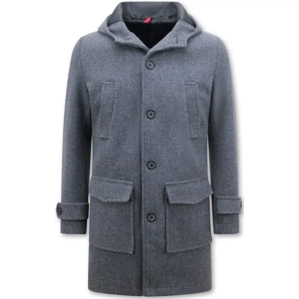 Getailleerde Mantel Jas Heren Winter met Capuchon -8931- Grijs – Specificaties:- Getailleerde Mantel Jas Heren Winter met Capuchon- Kleur: Zie afbeelding- Lengte: Lang- Pasvorm: Getailleerde Slim fit- Sluiting: Knoop- Materiaal: Polyester- Voering: 100% Polyester- Zakken: 4 Jaszakken, 1 binnenzaken- Seizoen: Winter- Wasvoorschrift: Machinewas 30 graden / Stomerij- Beschikbare Maten: XS – S – M – L – XL