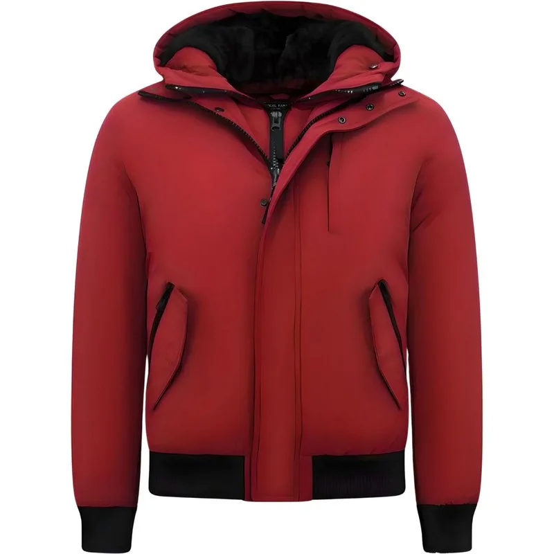 Gewatteerde Korte Jas Heren - 7015 - Rood - Productinformatie: Gewatteerde korte jas heren Heeft een exclusieve rode kleur Comfortabel en warm model, perfect voor de winter Kort model met een slim fit pasvorm Het materiaal bestaat uit 65% polyester en 35% katoen De voering bestaat uit 100% polyester Heeft een rits met drukknopen als sluiting Het model heeft vierjaszakken en één binnenzak De capuchon is niet afritsbaar Voorgedrukte knopen / rits aan capuchon.Zelf uit te breiden met bontkraag (wordt niet meegeleverd) Breng hem naar de stomerij voor een maximale levensduur Verkrijgbaar in de maten S – M – L – XL